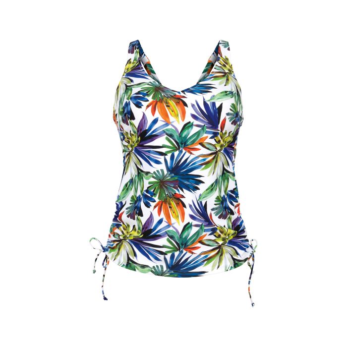 Das Floral Illusion Style ILLY Tankini-Top überzeugt mit Softschalen für optimalen Halt und einer seitlichen Längenregulierung durch schmale Bindebänder. Die verlängerte Passform bietet mehr Abdeckung als herkömmliche Tankinis und sorgt so für ein sicheres Tragegefühl bei gleichzeitig elegantem Look. Ideal für alle, die Komfort und Stil in einem Badeoberteil suchen.