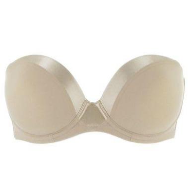 Der Ausschnitt wird durch einen Hauch von kontrastierendem Satin verstärkt. Glatter Rücken mit rutschfester elastischer Kante, um Komfort und Halt zu kombinieren. Drapierter Stoff und einfache Träger, sowohl abnehmbar als auch multifunktional. Diese Träger können um den Hals befestigt oder hinten gekreuzt werden, um allen Stilen gerecht zu werden.