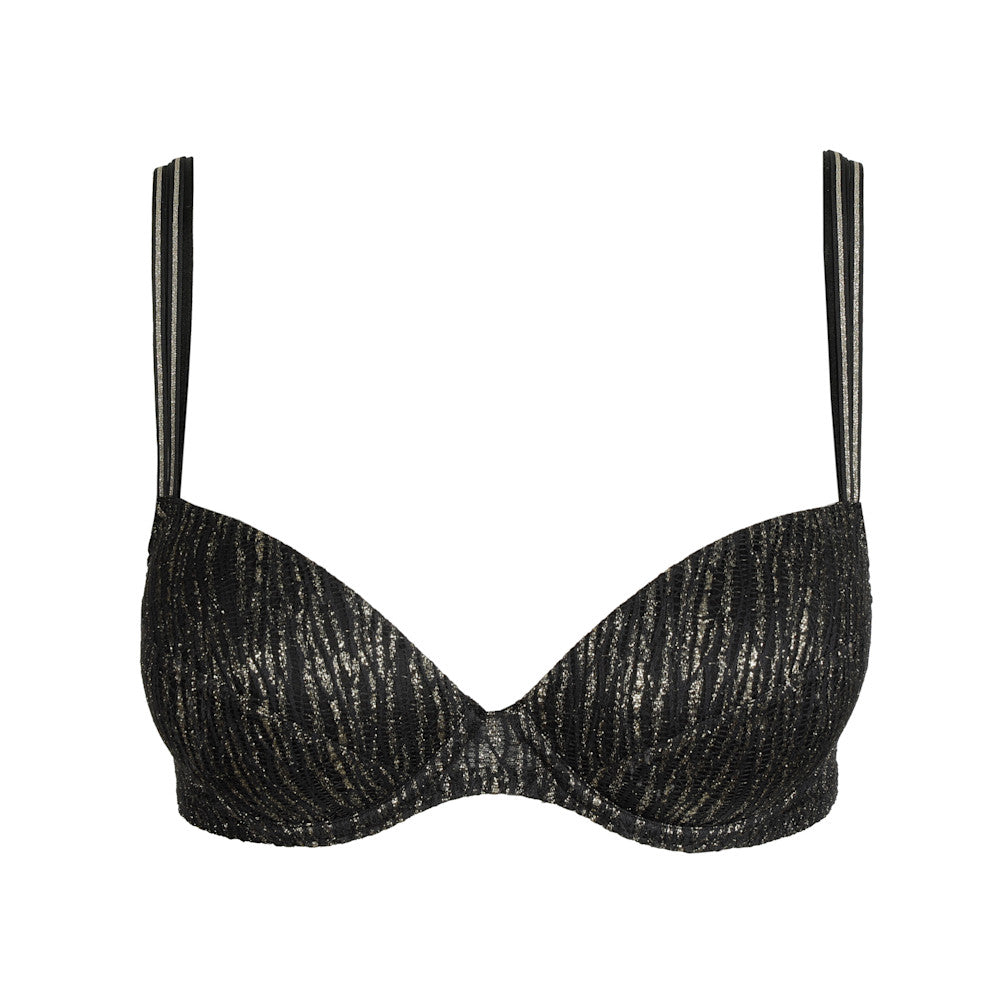 Der TABEI Unterlegte BH mit tiefem Dekolleté vereint elegantes Design und sicheren Halt. Das nicht-transparente Material sorgt für angenehmen Tragekomfort und diskrete Sicherheit, während die auffälligen Doppelträger in Gold-Metallic auf Schwarz Ihrem Outfit einen hochwertigen Akzent verleihen. Der tiefe V-Ausschnitt setzt reizvolle Akzente und macht diesen BH zum perfekten Begleiter für große Auftritte, die Aufmerksamkeit garantieren.