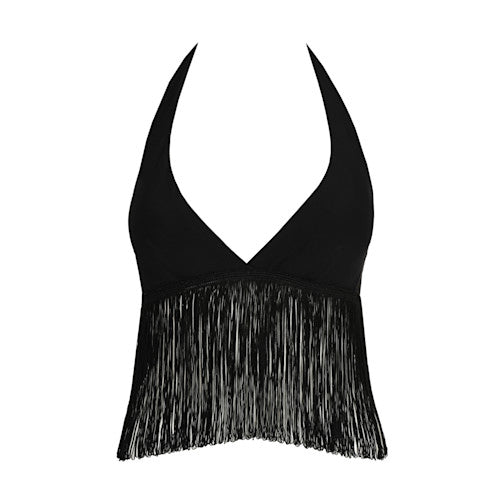 Dieses TAU-Top vereint Komfort und schlichte Eleganz in einem zeitlosen Schwarz. Die raffinierten Fransen sind so gestaltet, dass sie sich nicht verheddern – ideal als Bralette oder stylisches Festival-Top. Erhältlich in den Größen S bis L, bietet es eine mühelose Möglichkeit, einen lässig-sexy Look zu kreieren.