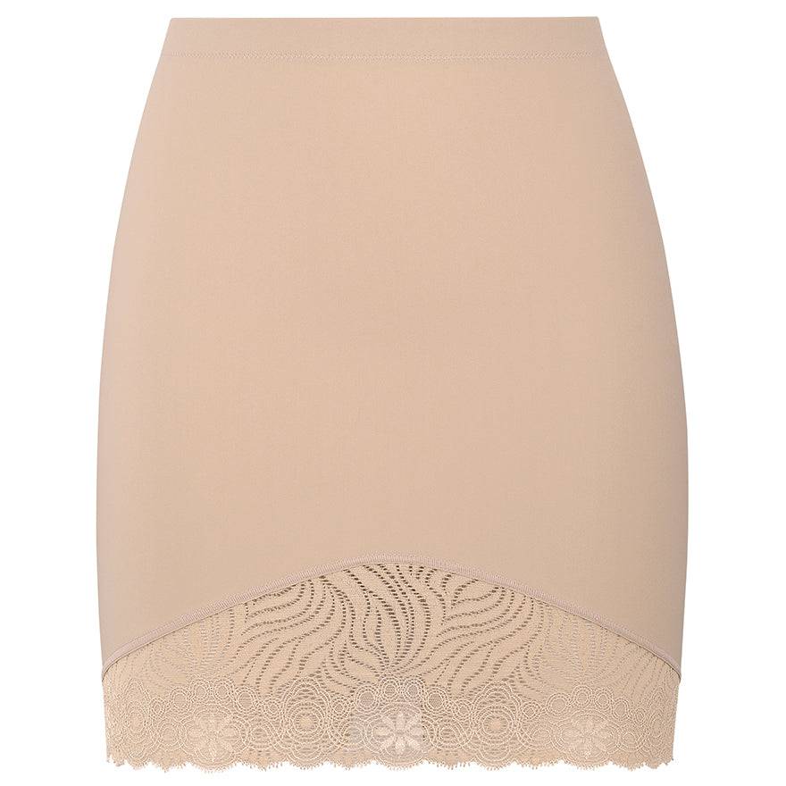 With the TOP MODEL SHAPE SKIRT you can achieve a slim, sensual silhouette thanks to the shaping Lycra beauty material. The skirt offers a triple instant effect - flat stomach, lifted buttocks and smoother thighs. The integrated panty made of soft tulle and side seams prevents riding up, while the wide stretch insert at the waist ensures a perfect and comfortable fit. The lace trim with dolphin hem visually lengthens the legs and underlines your figure. Show off your curves and feel confident in this skirt!
