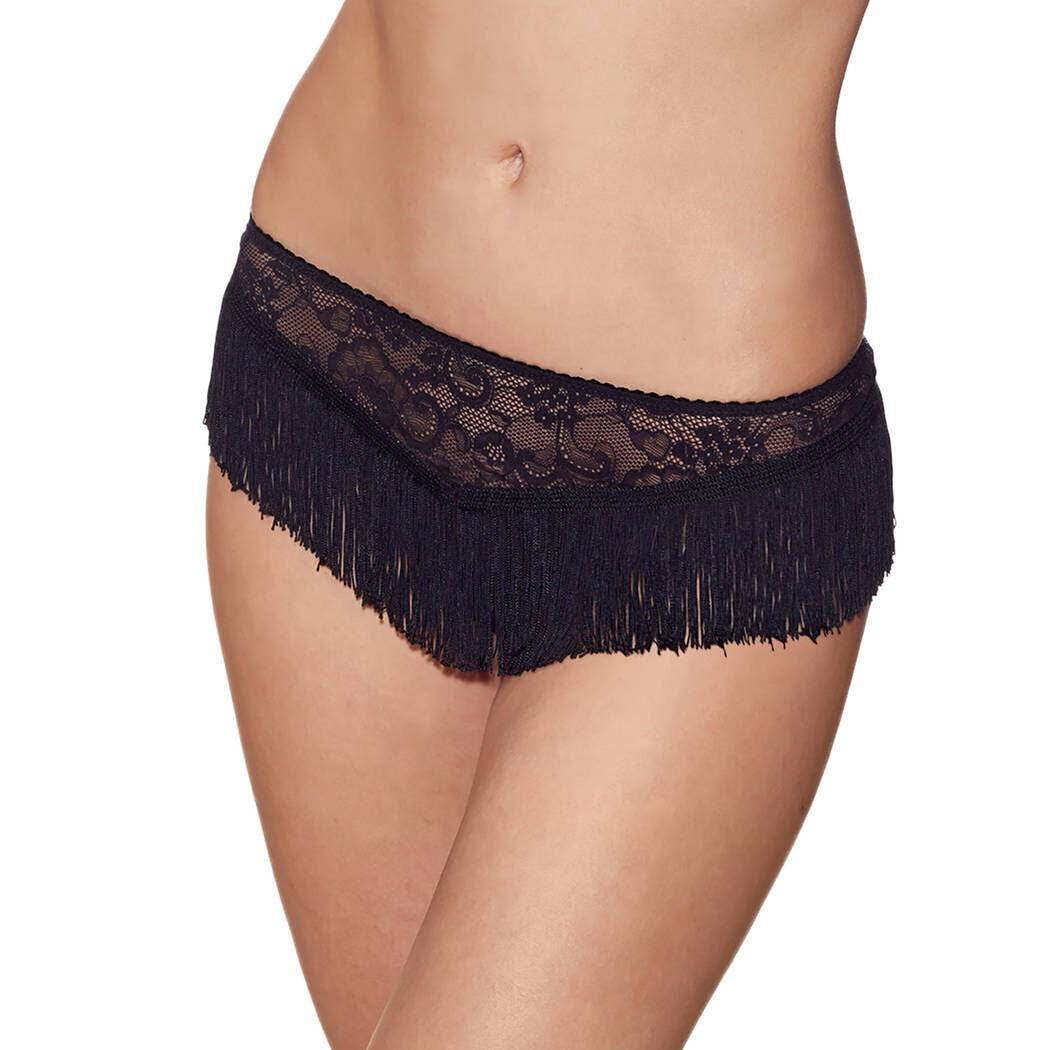 The ultra-sexy hot string from the Bôite à Désir collection is made entirely of jacquard lace and draws attention with its cheeky fringe finish. The string, which is reminiscent of a shorty thanks to its long fringes, adapts to your body shape thanks to its elastic material and can be perfectly complemented with the mask from the collection. As a mysterious accessory, the string enriches every erotic adventure. Aubade skilfully integrates the bourlesque style and thus ensures hot seduction. The provocative and teasing Boîte à Désir series delivers super-sexy lace lingerie with buttons and hooks for opening and closing. The adjustable one-size-fits-all models make it possible for almost every body type to wear, thus fulfilling every wish.
