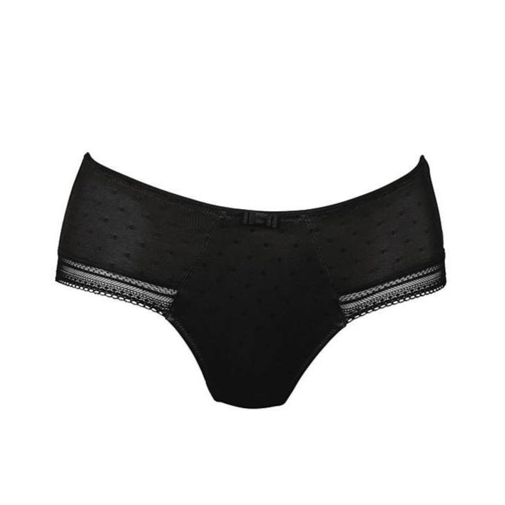 Der Taillenslip der Serie Emily vereint französische Eleganz mit höchstem Tragekomfort. Die Vorderseite aus gepunktetem Tüll ist blickdicht unterlegt, während die Rückseite mit feiner Spitzenborte ohne Gummiband gestaltet ist. Dadurch entsteht ein besonders flacher, unauffälliger Beinabschluss, der sich ideal unter enger Kleidung trägt und keine Abdrücke hinterlässt. Ein raffinierter Slip, der Stil und Funktionalität perfekt verbindet.