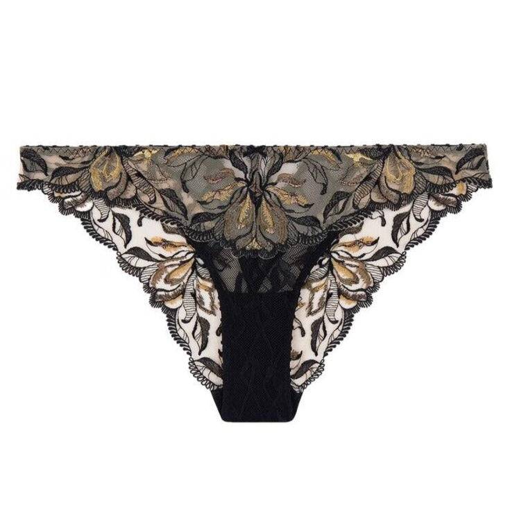 Tauchen Sie ein in die luftig-sinnliche Leichtigkeit von Encre de Chine Slip! Feste Lycra-Stickborte und Spitzenstoff verleihen diesem Modell femininen Charme. Die Linie wurde in Zusammenarbeit mit der talentierten Künstlerin Hong Waï entworfen. Entdecken Sie die raffinierte Stickerei mit Lurex-Akzenten in zartem Eternel und erleben Sie pure Sinnlichkeit!