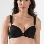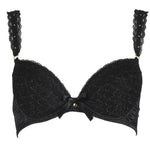 Verströmen Sie Glamour und Eleganz mit der wunderschönen Serie Femme Aubade von Aubade. Aufwändige Spitze trifft auf gitterartigen Stoff, um einen Look zu kreieren, der sowohl modern als auch einzigartig für Ihre tägliche Wäscheschublade ist. Der Bügel-BH bietet hervorragenden Halt und ist mit herausnehmbaren Einsätzen für den beliebten Push-up-Effekt gepolstert. Der tiefe Ausschnitt in der Mitte setzt das Dekolleté in Szene, während die vergrößerte Schleife in der Mitte für einen wahrhaft femininen Touch sorgt. Der BH hat verstellbare Träger für eine individuelle Passform und wird hinten mit einem traditionellen Haken- und Ösenverschluss geschlossen.