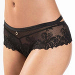 Durchbrochener Tüll und funkelnde vergoldete Ringe machen den schicken Saint-Tropez-Slip aus der Linie Femme Passion Noir zu einem Must-Have für jede modebewusste Frau. Die französische Stickerei und das Tupfentüll verleihen ihm eine überaus modische Silhouette, die zusammen mit einem BH-Modell der legendären Kollektion tagsüber getragen werden kann und nachts perfekt zu einem langen T-Shirt passt. Die Kombination aus edlen Materialien und raffinierten Details wie gehämmerten Knöpfen und Ringen machen den Velvet Memories Slip zu einem unverzichtbaren Begleiter auf einer Reise von Tausendundeiner Nacht.