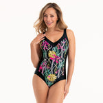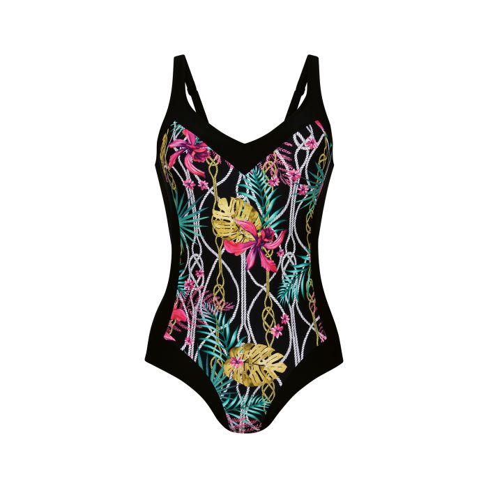 Der Badeanzug „Golden Moment Style SIDONIA“ überzeugt durch seine eleganten, schlankmachenden Blendeneinsätze, die eine vorteilhafte Silhouette formen. Dieses Modell verbindet hohen Tragekomfort mit einer schmeichelhaften Passform, die jede Figur optimal unterstützt. Die durchdachte Gestaltung betont die natürliche Schönheit und verleiht der Trägerin ein selbstbewusstes und stilvolles Auftreten. Ideal für alle, die Komfort und Eleganz in einem Badeanzug suchen.