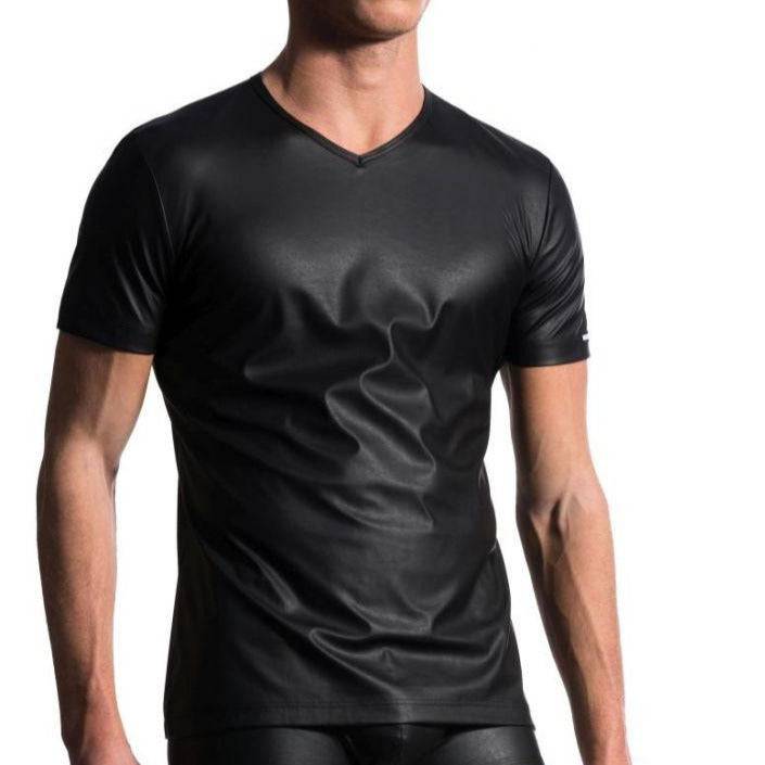 Manstore V-NECK TEE REGULAR IN KUNSTLEDER-OPTIK