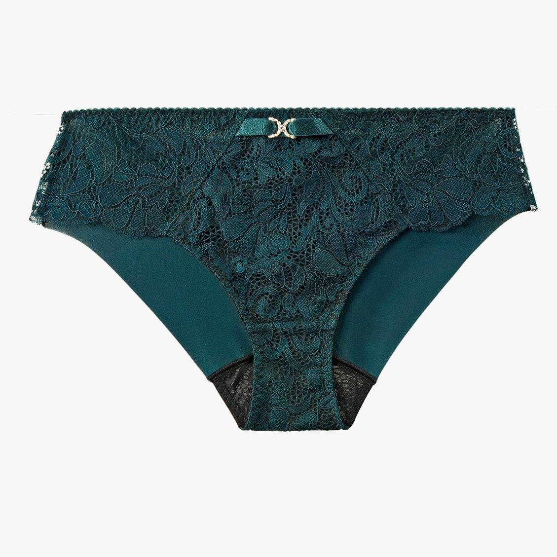 Die Linie Mon Bijou betont die weiblichen Kurven durch einen eleganten Kontrast aus Blickdichtigkeit und Transparenz. Wie ein Schmuckstück auf der Haut umgarnen ziselierte Spitze und ein Satinfutter den Körper in einem aufregenden Spiel aus Hell und Dunkel.