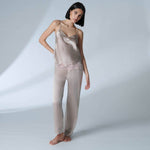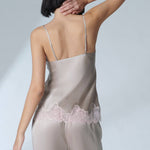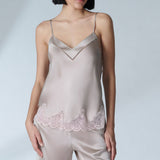 Entdecken Sie das NOCTURNE SEIDEN TOP | MONDSTEIN! Dieses vielseitige Top aus Seide und zarter Fransenspitze ist perfekt für den Tag und die Nacht geeignet. Das transparente Tüll-Dekolleté und die verstellbaren Träger sorgen für eine bezaubernde Silhouette. Ein unverzichtbares Must-Have für Ihre Garderobe!