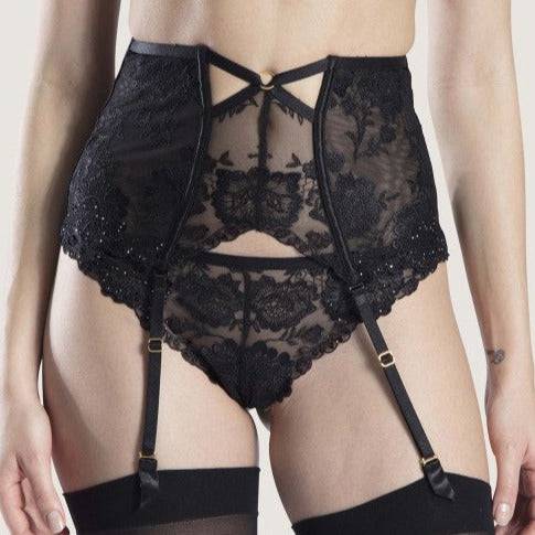Das Herzstück der Kollektion Nuit Indecente, dieser Taillengürtel von Aubade, ist wirklich bezaubernd. In der Taille sitzend und die Hüften formend und glättend, suggeriert er kühne Weiblichkeit. Mit seiner üppigen Tüllstickerei, den zweifarbigen, funkelnden Diamanten und dem traditionellen Verschluss mit mehreren Häkchen auf der Rückseite. Gepflegt, stilvoll, wirkungsvoll und bei Juste Moi mit passenden Slips und BHs erhältlich.