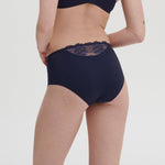 Entdecke den luxuriösen RÊVE TAILLEN-SLIP: Mit seiner exquisiten, blickdichten Spitze, weicher Baumwolle und Mesh-Material kreiert er einen eleganten Look. Genieße ein unvergleichliches Tragegefühl dank der verstärkten Vorderseite, seidiger Zwickelkante und flachem Stretch-Saum! Erlebe pure Sinnlichkeit - betörend und aufregend! BLEU COSMIC - entdecke es jetzt!