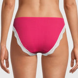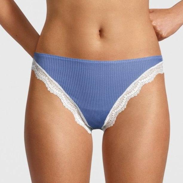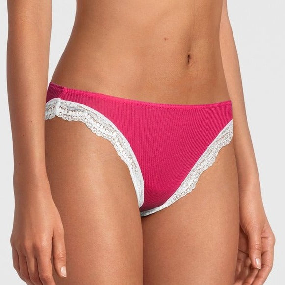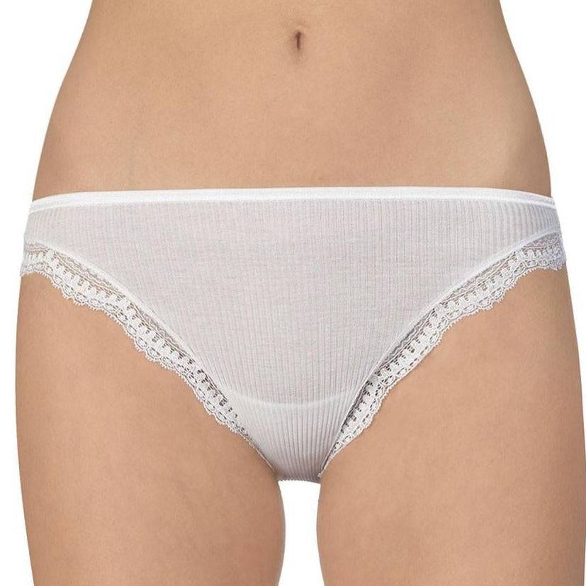 Slip aus zartem Ribknit-Stoff aus reiner ägyptischer Makò mercerisierter Baumwolle (Filoscozia®) mit einer stilvollen und femininen französischen Leavers-Spitze, zertifiziert und nummeriert als echte „Dentelle de Calais®“.