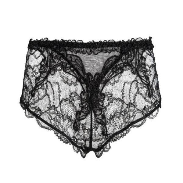 Filigrane Shorty in einer verführerischen Komposition aus arabesken Guipure-Stickereien kombiniert mit hauchzarter Leavers-Spitze. Optimale Passform und perfekter Tragekomfort werden Ihnen nicht vorenthalten.