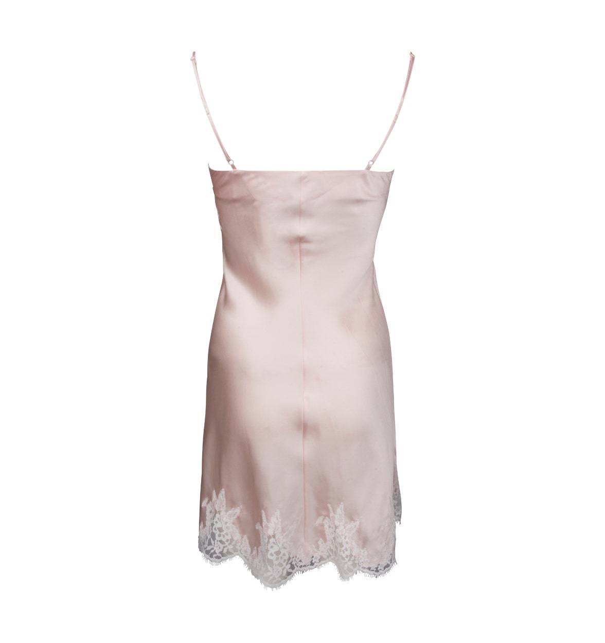 Das Nachthemd ist unten leicht ausgestellt und hat eine Länge bis oberhalb des Knies. Dünne Träger aus Seidensatin. Calais-Spitze am Ausschnitt und am unteren Teil.Splendeur Soie, eine luxuriöse Sinnlichkeit, die durch ihre Brillanz, ihren Reichtum und ihre Weichheit sehr angenehm zu tragen ist.