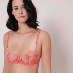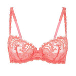 Entdecke mit unserem WISH BÜGEL-BH mit Halbschale in der Farbe Korallenrot ein feminines Gefühl und lasse Dich völlig sinnlich entlarvt. Elegante und dekorative Träger und ein verführerischer Look dank anspruchsvoller Blumenstickereien und Guipure-Einsätzen, machen den BH besonders charmant. Der Jacquard-Satin sorgt dank seinen Motiven, sowie den hochwertigen Stickereien an der Vorderseite, für ein unvergleichliches Wohlbefinden. Der obere Rand des Mittelstegs wird durch eine schöne Schleife veredelt.